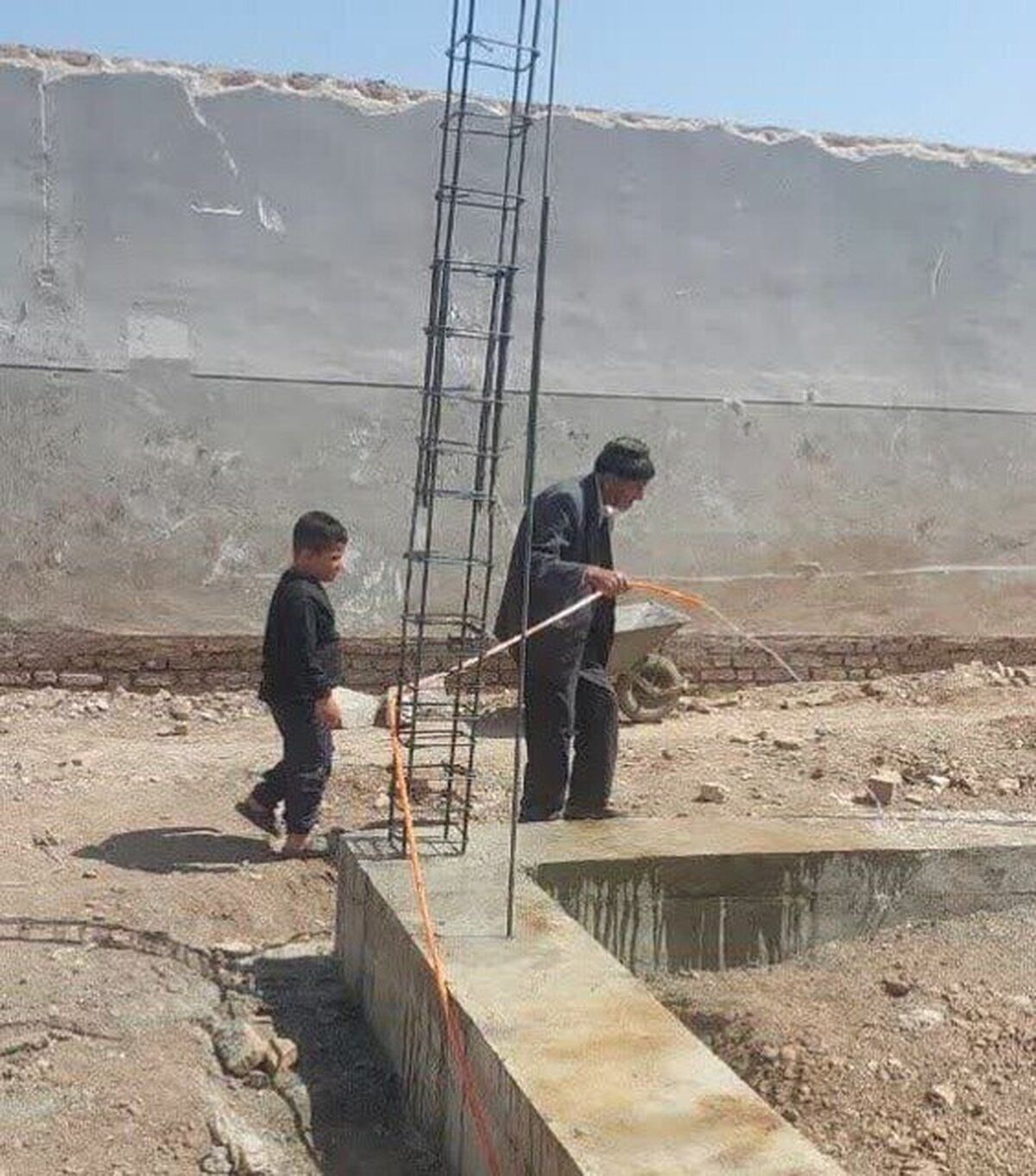 پدر بزرگ ۹۹ ساله پای کار مدرسه سازی